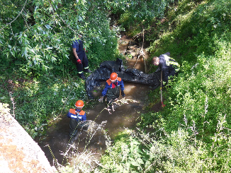 Eine größere Herausforderung stellte da schon eher der zweite Einsatz, denn es blieb nicht ganz ohne Komplikationen. Eigentlich war es ein simpler Einsatz, aber schon das Bauen eines Damms aus einer Leiter, einer Plane und Steinen in unserem Schlackenbach war das erste Problem. Als wir es dann endlich geschafft hatten, die A-Schläuche zu legen, konnte die Brandlöschung beginnen. Damit entstand das zweite Problem: da der Stützkrümmer nicht richtig gekuppelt worden war, machte sich der Schlauch für einen kurzen Zeitraum selbstständig.